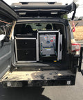 Due to the length of the FJ Cruiser, double drawer modules in 25" depth and side x side modules at 28" depth are the deepest that will fit onto the rear plate system.