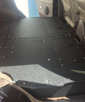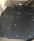 The low profile sleep platform requires the removal of the second row seat backs and seat bottoms. Combined both Seat Deletes to create a complete platform. None of the sleep platforms require drilling or cutting and require simple hand tools for installation.