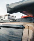 Our DRIFTR series roof rack for the 2005-2023 2nd and 3rd gen Toyota Tacoma not only gives you tons of added utility, but it unlocks an ecosystem of customization options to fully dial in your rig. Our racks are modular, light weight, super tough, have a low profile, install quickly, allow easy customization, have provisions for front and rear lighting, and ship cheap directly to your door. Dial in your rack exactly how you want it with our Universal Accessory Deck Panels and Awning Brackets.