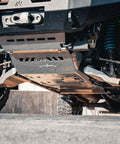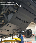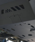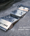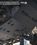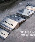 This full skid plate system includes an engine skid, transmission skid, and transfer case skid that nest into each other to create one solid piece for full undercarriage protection. In addition, if you have our Backwoods Tacoma Front Bumper, you can also purchase and install our connector plate that covers the gap between the front bumper and the top of the engine skid. The result is a seamless, completely protected front end.