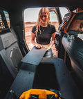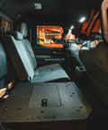 The Hybrid Double Cab Second Row Seat Delete is designed to create a flat platform that you can use to secure your gear, for your dog's bed and can also be used to store your refrigerator or cooler.