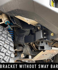 *If you have an aftermarket suspension that incorporates a shock reservoir bracket into the sway bar brackets, you may have to purchase slightly longer bolts in order to sandwich the bracket or you may need to modify the bracket itself depending on your specific suspension setup.