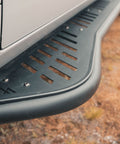 One of the most important things you can do before hitting the trails is protecting your rig with a pair of well made rock sliders. Rock sliders protect your rocker panels, which are very expensive to repair if damaged. Our 3rd Gen Toyota Tundra rock sliders are the perfect combination of a step and a rock slider. Besides added protection from the trails, our sliders give you added functionality - a step.