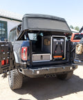 The Ford Bronco Raptor will require the roll bar reinforcement (black bar pictured below) to be removed in order to fit the CampKitchen 2.31.