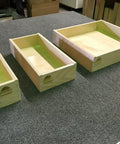 The Medium Size is designed to fit next to a Cook Partner 18" Double Burner stove and measures 7"w x 14-1/2"d x 3-3/8"h