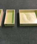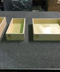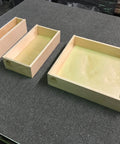 The Medium Size is designed to fit next to a Cook Partner 18" Double Burner stove and measures 7"w x 17-1/2"d x 3-3/8"h