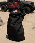 We extended the length of our bags, squared out the bottom for things to sit a little prettier. With the extended length of the bag, you can now roll it down to the desired length, bring the clasps together and badda boom! Your gear is protected from the outside elements and is ready to be stored snuggly in your rig. Or maybe your gear just got pulled out of the mud and now the bag is protecting your truck from your gear. The possibilities are almost endless.