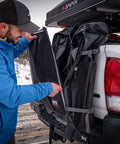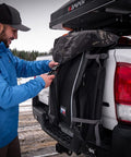 Oscar's Mobile Hideout is our solution to an all-purpose spare tire/ladder/rack attached utility bag for anything you need on the trail - trash holder, recovery gear, tool collection, storage, etc. Made of 18oz. poly reinforced vinyl that resists fading and is chemically resistant, as well as highly durable. Get it dirty, hose it out.