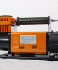 Example of the speed: most common/budget compressors put out less than 2CFM and take over 30 minutes to air up four 35" tires from 10 to 30 PSI, but with the EZ FLATE M.E.S.A., the job is done in 10 minutes flat!
