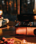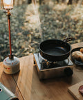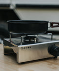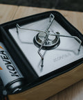 This stainless steel portable mini-stove features a detachable pot strut for easy cleaning. The elegance of this simple design is both functional and beautiful.