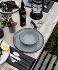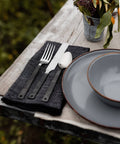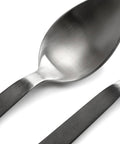 Minimalist, utilitarian, and modern. Bright stainless steel transitions to a matte carbon finish for a look that plays beautifully against our enamelware. Includes a steel cable loop and linen storage bag for protecting and organizing. Dishwasher safe. Dimensions: 9.2” x 1.4". Weight: 0 .31 lbs.