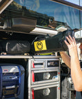 After the recovery, clean up the evidence with the Deadman Bodybag. Designed specially to hold the Deadman Earth Anchor or the Stretchy Band. The bag is large enough to carry your soft shackles, and some gloves, pretty much everything you need for a straight forward self-recovery. Strap it to your roll bars or throw it in the back of your rig & go!