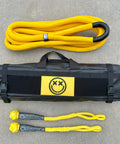 The Deadman Stretchy Band™ kinetic recovery rope is an essential tool in your recovery arsenal for vehicle-to-vehicle recovery. Unlike a tow strap or the Deadman which uses static fibers (non-stretch), the Stretchy Band is designed with fibers that stretch up to 30% under load, absorbing shock loads and acting like a rubber band to give a little extra yank to the stuck vehicle. This is great for vehicle-to-vehicle recoveries where one vehicle is stuck, but this stretchy property makes it a bad choice for towing (we advise you do not).