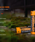 Powerful, durable, and rechargeable, the ARB-L14-1050 battery will power your light for a longer duration than a standard AA battery. Usable in most AA-powered flashlights and products.
