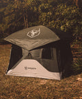 The T3X Hub Tent easily accommodates up to three people with its comfortable 76" x 82" interior. The T3X comes fully-assembled and sets up and takes down in under 90 seconds. Measuring at 57" long collapsed it will fit in the backseat or trunk of most vehicles. The T3X makes the perfect car camping tent with its compact size and quick assembly.