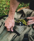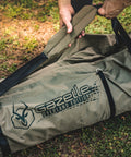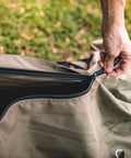- Includes an oversized water-resistant duffle bag with a covered zipper and taped seams