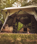 The T4 Plus Hub Tent Overland Edition has all the same great features of the T4 Plus Hub Tent, with additional upgrades to take this tent to the next level. Our Overland Edition includes an added durable footprint for floor protection, upgraded all-terrain stakes, and a water-resistant carry bag. This tent spaciously provides 110 square feet of floor space and stands 78” tall – sleeping four to eight people with spare space for your gear. The T4 Plus Overland Edition comes fully-assembled and sets up and takes down in under 90 seconds. Let the T4 Plus Hub Tent Overland Edition take your base camp to the next level.