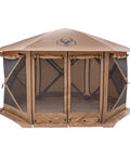 THE G6 COOL TOP 6-SIDED GAZEBO HAS ENOUGH ROOM FOR A GROUP OF EIGHT PEOPLE, CHAIRS AND A TABLE
