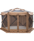 Gazelle Gazebos are portable and easy to set up, making them one of the most versatile shelters on the market. Whether you’re a car camper, RV enthusiast, or just hanging out in the backyard, Gazelle has you covered. The G6 Cool Top Gazebo is a breeze to use and provides a level of comfort to relax all while protecting you from Mother Nature when needed. It’s spacious 6-sided design provides 92 square feet of space, which is enough room for up to eight people and a table. Standing over 7.5’ at its center you can move around freely without feeling cramped. With its unique hub design, the G6 Cool Top Gazebo sets up in under 60 seconds, there is no assembly required and no loose parts. Packing up is just as quick, and it fits easily back into the included oversized duffle bag. The G6 Cool Top 6-Sided Gazebo is built with our exclusive TriTech mesh, a single filament mesh that features increased durability and improved airflow, without compromising the ability to keep even the smallest bugs out. The included rain fly and integrated wind panels provide privacy or protection from the wind and rain as needed. While the polyester shell and roof material features a UV50+ rating protecting you from the sun. If weather permits and pests aren’t an issue enjoy the zippered windows on both the screened walls and wind panels. Included with your gazebo are Gazelle All-Terrain Stakes allowing you to stake down your gazebo in even the toughest terrain. The Gazelle G6 Cool Top Gazebo is the perfect addition to your beach day or backyard party.