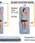 Designed with the outdoors in mind, the patented Sleep System has all the comforts of your home mattress but is ready to roll with you, wherever your adventures lead. Perfect for tent camping, van life, station wagon camping, truck conversions, cartop tents, or sleeping on the ground under a starry sky. Sleep well & play more!