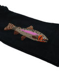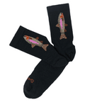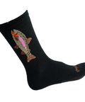 Black socks with a Bonneville Cutthroat swimming up the side. 6 inch cuff height.