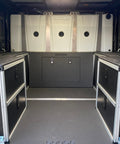 This L Bracket installation method means you can slide the panel forward and rearward as you so choose. For example, you simply want a clean fill panel at the front of your Canopy camper that is in close to alignment with the optional Alu-Cabin water tank. This panel can do just that. Or, lets say, you want to place a second battery or just personal gear and you need more space, the panel can be slid towards the rear of the vehicle to create a larger storage space.