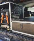 Now with Fitted Top Plate you are gaining one extra storage locatable access hatch that can be used to store extra gear. With the ability to store gear on top of the CampKitchen you can keep your entire pantry on top of the CampKitchen. Adding the Second Row Seat Delete Plate System that is module height now allows you to have the ability's to sleep in the back of your 4Runner.