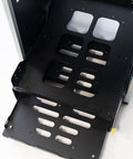 The Goose Gear CampKitchen is designed to house your fridge and your stove in one convenient Module. Featuring a double slide operation, you can open the fridge and/or the stove slide independently or combined.