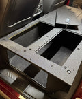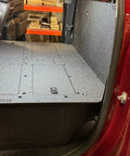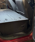 Please take a look at the photo of the factory back wall without the seats installed to ensure that your vehicle matches what we have already designed around. If your back wall and under seat areas do not look like what you see in the following photo, please reach out to us prior to ordering as we cannot guarantee fitment into your vehicle. The image below shows six silver-colored threaded adapters, that are part of the installation hardware, already in place in the factory bolt holes.