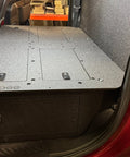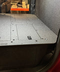 The Chevrolet Silverado, Silverado HD and GMC Sierra 1500 and Sierra HD second row seat deletes for the Crew Cab 4 door are designed for you to easily remove your rear seats and create a flat and secure platform for securing your gear. The platform includes hatches that allow access to the factory storage space below the rear seats. In addition to the base plate, you also get a back wall replacement that is secured to the base plate and the factory anchor points in the back wall.