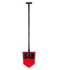 - 3-position folding shovel head with hoe, dig, and storage positions