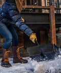 Made with lightweight and durable 6061 aircraft grade aluminum, the Stealth XL is a strong, collapsible, and high-performance shovel. The telescoping aluminum handle allows users to select a shovel length between 40” and 62” (102 cm and 157 cm) for comfortable, efficient, and ergonomically correct shoveling. The Stealth XL shovel packs down to 22” x 14” x 3” (56 cm x 36 cm x 8 cm) and weighs just 4.5 lb. (2 kg)