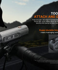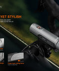 The Fenix BC21R V3 bike light packs 1200 lumens of illumination and is lightweight and mountable. Those with experience in bike lighting will appreciate the 4 output levels, flashing mode, single switch interface, and easy-to-read battery level indicator. Constructed with an aluminum body and tested for drops up to 1.5 meters, the BC21R offers IP68 waterproof resistance for up to 30 minutes in 2 meters of water. Its broad flood beam pattern and 142-meter throw ensure ample reaction time to unexpected obstacles, while the quick-release allows easy removal for charging or transferring to another bike. The package includes an 18650 battery and USB Type-C recharging. All these features make the Fenix BC21R V3 a great choice.