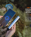 The Fenix E-CP is a powerhouse of practicality, pairing 18W fast charging and 1600 lumens of bright light. With the E-CP, a typical Android device can be charged from 0-40% in 30 minutes, while its 5000mAh battery can be recharged in around 2 hours using an 18w fast charger. Emergency-ready features include tail stand capability, a self-defense strobe, a lockout function, IP68 waterproofing, and a 1.5m drop test. Make sure you're ready for anything with an E-CP!