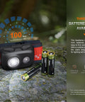 The HL16 Headlamp boasts 450 lumens and reaches distances of up to 341 ft (104 m). It features red and white LEDs, plus a 60° tilt, ideal for night activities such as running, camping, and trekking. Lightweight German PC material ensures exceptional comfort and a 1.5m drop resistance, while a dual switch offers separate control for the white/red light and SOS mode, along with an electronic lockout to prevent unintended activation and battery drainage. Crafted in three stylish tones - black, chartreuse, and pink - it runs on AAA batteries for up to 100 hours on low mode.
