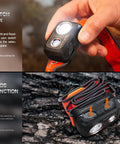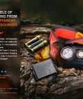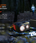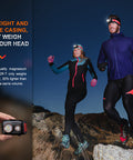 The lightweight HL32R-T Trail Running headlamp boasts 800 lumens from two spot and flood light LEDs with a 30% lighter magnesium body. It's powered by a rechargeable 1900mAh battery (included) or AAA batteries (not included), and has a USB Type C charging port, ensuring a quick 3-hour recharge. It offers up to 20 hours runtime and the smart stride sensor adjusts the brightness to match your running speed. Additionally, an SOS mode and reflective headband provide assistance should you need it. A perforated headband allows airflow and sweat evaporation for cooling, and the SPORT headband fit system allows for customized fit with just a twist. You can rest easy with the lockout function, plus the IP66 waterproofing, 2- meter drop and -31° to 113° fahrenheit operation ensures a durable, reliable headlamp for your trail runs.
