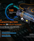 Powered by a 5,000 mAh 21700 Li-ion battery, it offers up to 100 hours of runtime on low mode and delivers a beam distance of up to 186 meters (610 ft). Built with a durable metal body, it’s IP68-rated waterproof, impact-resistant up to 2 meters, and includes an adjustable, anti-slip reflective headband for secure, comfortable wear.