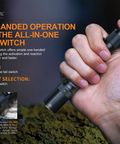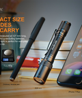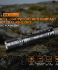 Fenix E20 V2.0 is a lightweight EDC flashlight you'll want to take everywhere. This compact model runs on two AA batteries and boasts a maximum lumen output of 350. It has a single rear switch to power the flashlight and switch between output levels. Plus, it features a 3mm thick patented ultra-thin optical lens, an 85° beam angle, and an A6061-T6 aluminum body. Weighing only 1.4 ounces without the batteries, the E20 V2.0 is as big as a pen and easily attaches to a briefcase or purse making it an ideal everyday carry flashlight.