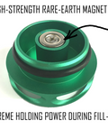 -Rare-earth magnet holds the cap to any metal surface on the truck during fill-ups.