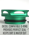 -Diesel Compatible O-ring ensures a snug fit inside the fuel fill hole.