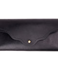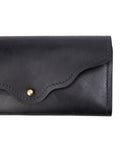 Our Ladies Leather Card Clutch / Wallet has a slim design but ample storage space! It offers an ID window and 8 card slots that can hold multiple cards. Two interior compartments for holding cash or receipts. It features a classic brass stud closure and a classically styled flap. Our American-made Women's leather wallets will amaze you because of how long they last.