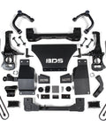 Up the ante of your Chevy Trail Boss and GMC AT4 1500 truck with a 2.5-inch suspension lift kit featuring FOX Performance Elite coil-over shocks. Designed to improve stance, performance, and capability, this kit includes everything necessary to set your truck up right with clearance for up to 35" tires. These kits feature proprietary FOX 2.5 coil-over shocks designed specifically to bolt-on performance for increase travel and the ability to soak up the roughest terrain along with smooth on-road comfort. This kit takes advantage of BDS's tried and true high-clearance design for improved ground clearance, strength, and offroad protection while correcting suspension and steering geometry for great on-road handling characteristics. Up front, the kit utilizes top mounted strut spacers, upper control arms, high-arched 1/4-inch thick steel crossmembers along with a multipiece differential relocation brackets and heavy duty skid plates built for offroad protection. Steering geometry is corrected at the new taller ride height with CNC-machined ductile iron steering knuckles and replacement tie rod ends allowing for ESC system compatibility. These combined with the provided sway bar drops, bump stop extensions, brake line brackets, CV spacers, supplied hardware and more provide a comprehensive front suspension lift ready for whatever you throw at it. In the rear BDS offers a heavy duty lift block to lift and level that stance. The lift block installs in place of the stock block and retains ride quality and load capacity. Also for the rear are new u-bolts, brake line brackets and precision tuned premium FOX 2.0 Performance Series shocks.