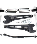 Up front the lift kit includes diesel-specific Pro-Ride coil springs, heavy duty replacement radius arms, high strength 1-3/8 inch solid steel track bar for steering correction, brake line brackets and precision tuned nitrogen charged shocks.