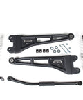 In place of the factory stamped steel radius arms BDS supplies a pair of high-strength tubular radius arms. These arms mount into the factory location and offer caster adjustment for a wide range of lift heights along with an OE-style rubber bushing at the frame mount for smooth, quiet, service-free operation.