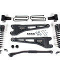 Up front the lift kit includes diesel-specific Pro-Ride coil springs, heavy duty replacement radius arms, high strength 1-3/8 inch solid steel track bar for steering correction, sway bar relocation, brake line brackets and precision tuned nitrogen charged shocks.