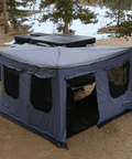 Not compatible with 270 Awning V2 . The 270 Awning room is the perfect addition to your FSR 270 Awning. Awning room has five large widows, main door and flooring included. The Awning room also has two vehicle access windows in the back. Or detach/Unzip the back of the Awning room wall to allow full access to your vehicle. The awning room attaches to the awning by velcro around the entire perimeter of the vehicle as well as the floor.