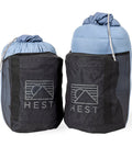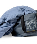 The HEST Down Comforter features premium insulation of hydrophobic down paired with outdoor-ready easy to clean fabric. Smartly designed to include a clever cinch footbox which keeps the comforter in place while supporting thermoregulation throughout the night by allowing glabrous skin (hands and feet) to be exposed to reduce temperatures as needed for an optimal sleep experience outdoors. Clever features like top sheet loops and a cinch compression sack make the comforter easy to store, pack, & clean. Cozy up to the best outdoor comforter and sleep better with HEST.