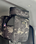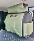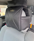 - Multi-pocket headrest organizer: This amazing headrest storage bag has numerous pockets, a detachable sunglasses pouch, and a padded area that rests comfortably against your head.