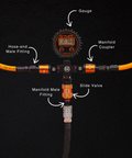 - Equalizes pressure automatically disconnects from the manifold for easier setup and takedown