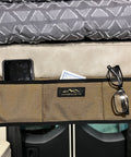 Keep your van's bed area organized and clutter-free with our Small Bed Organizer. This padded organizer provides a convenient storage solution for small items like glasses, phones, books, and more.
